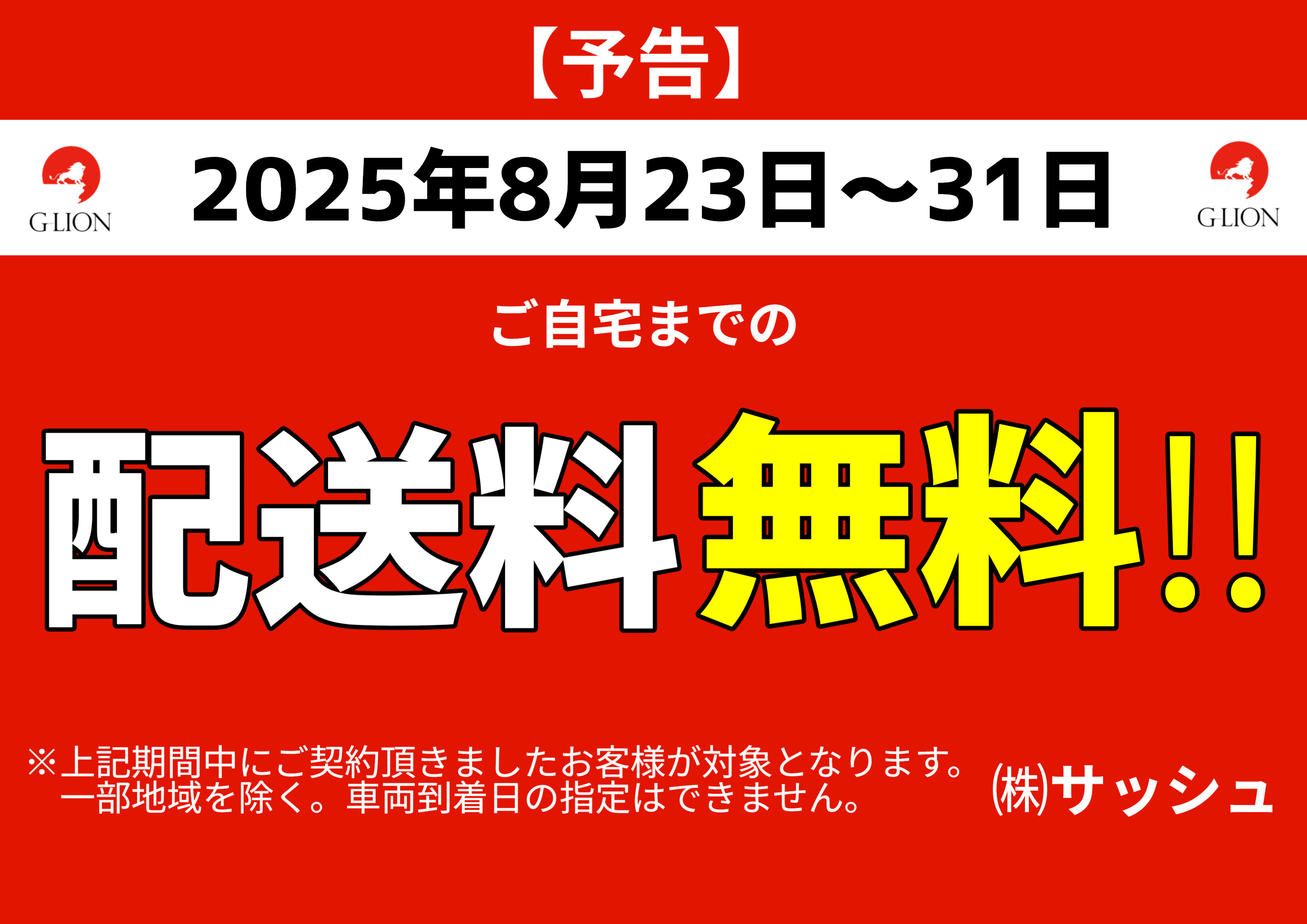 2025年8月23日~31日の対象期間に車両ご成約(新車・中古車問わず)頂きましたお客様限定で、ご自宅までの配送料が無料に!!!
