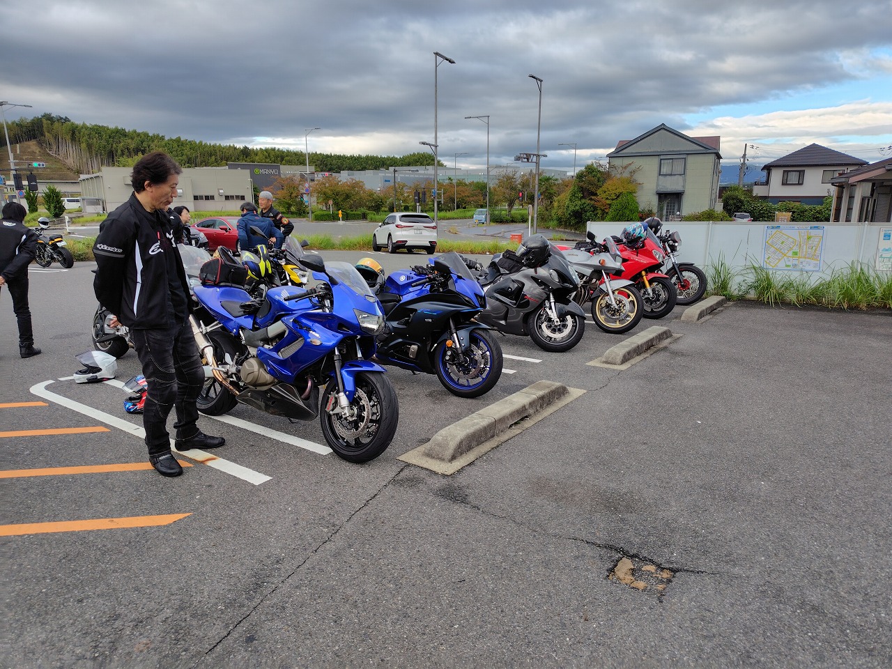 早朝コンビニ集合。今日お披露目のU様。新型のパニガーレV2。