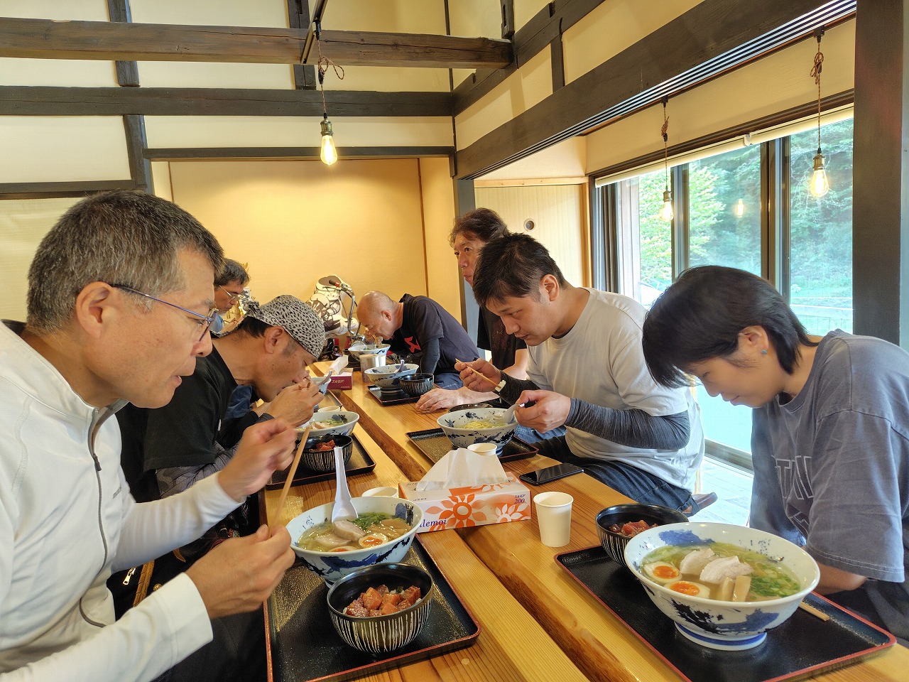 カッパを脱いで何とか美味しい食事にありつけました。