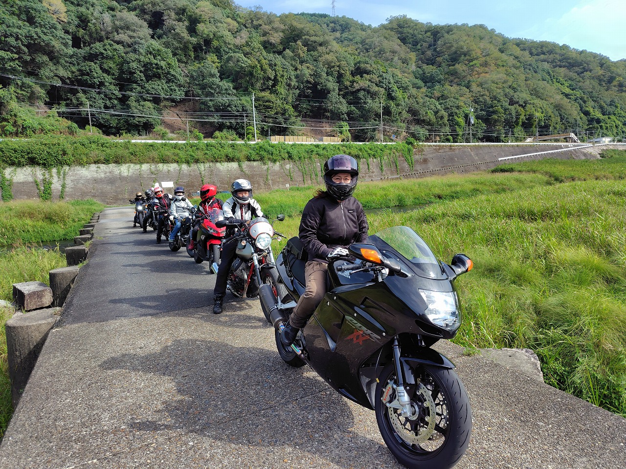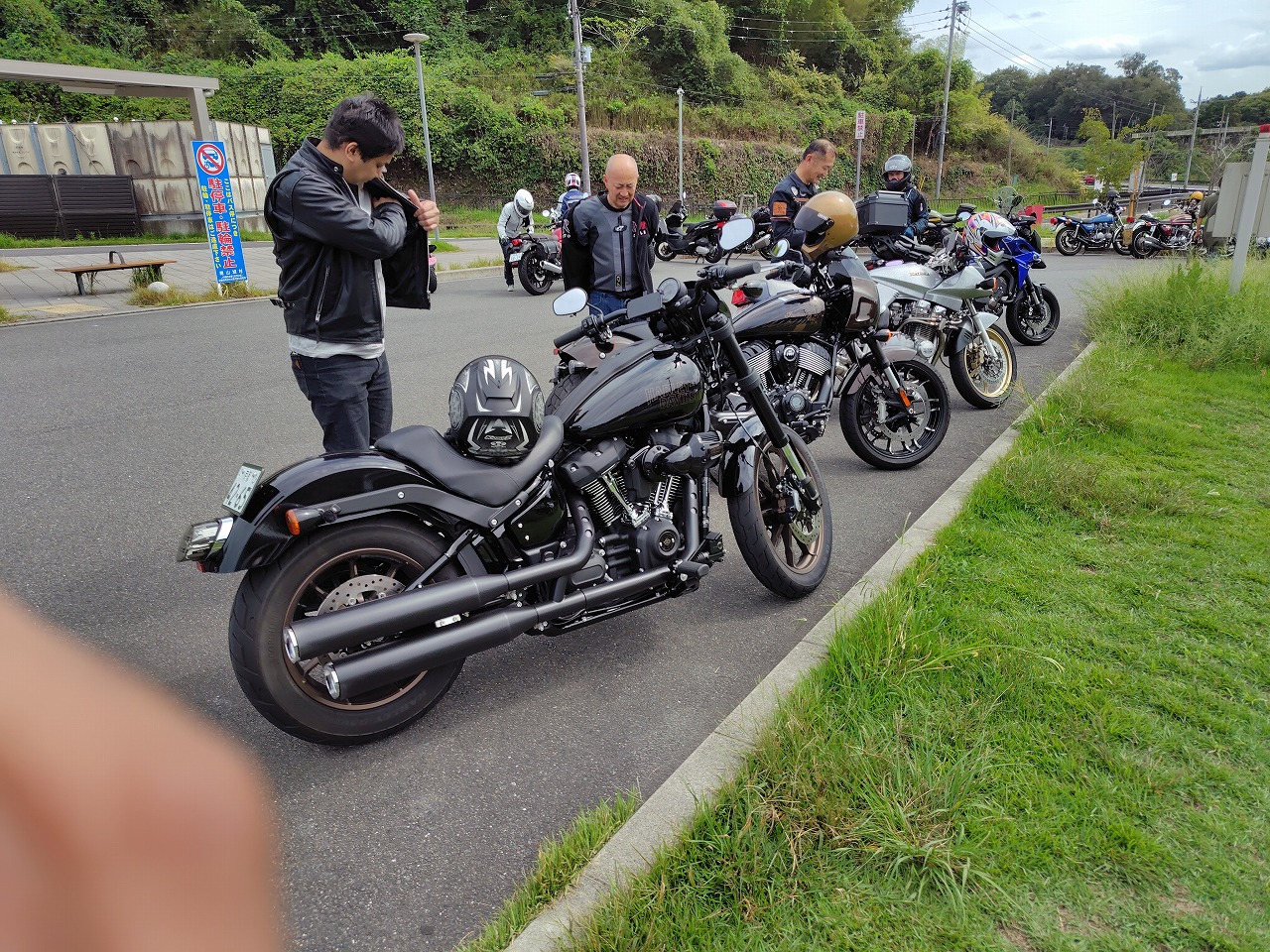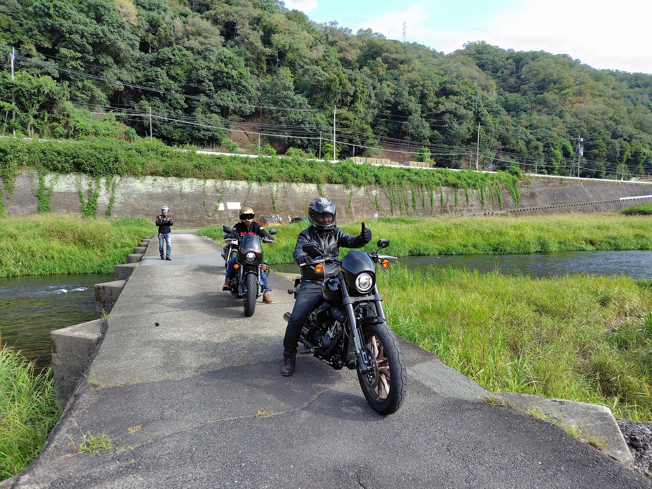 いつもありがとうございます、サッシュのアッキーです。 9月に入っても信じられない暑さが続いてましたが、やっと秋らしくなってきました。 先日の火曜日祝日は店休日ですが、ノーマルクラスのツーリングを開催しました。 城陽のコンビニ兼ガススタに続々集合。 当店の保険担当のカタナ隊長初参戦、ムードメーカー丸ちゃん、 ベテランクラスの方も後方でよければ、と参加。 集合時点からワイワイ。 曇り空の中出発。 初心者クラスもいるので細かく休憩をつなぐ感じの工程です。 まず井手町から和束のデカイ駐車場の休憩所へ。 まさかの写真撮り忘れ(笑) そこから163号から定番潜没橋へ。 橋周辺には釣りをしてらっしゃる方も沢山いたので 迷惑にならないように素早くエンジンを切り、写真撮ってとっとと退散(笑) 見事にジャンルバラバラ(笑) そこから月ヶ瀬のダム沿いのワインディングはノーマルクラスの方はゆっくり走っていただき ベテランクラス2名にも楽しんでいただく為に先行先導。 二人は水を得た魚状態で嬉々として楽しんでおられました。 今回の自分の車両はCL500。きついかなぁと思いましたが、タイトなワインディングでは まったく問題なし。手練れの方を全く退屈させることなく走れました。 たった50馬力弱の19インチのフロントホイール車両が20キロしか出さない軽トラの後ろから 相当なペースのワインディングまでカバーする。 世間では中途半端な排気量の不人気車両の扱いですが、実は超絶万能マシンです。 それぞれのワインディングを楽しみ月ヶ瀬湖畔ではばかり休憩した後は、 心癒される風景を堪能して開店10分前のライトニングボルトさんへ到着。 各自好きなものを注文、カレー、ハンバーガー、うどんどれもおいしゅうございました。 いつも大人数で突然押しかけて本当にすみません。ありがとうございました。 貼らせていただきました! その後は午後の天気が怪しいので早めに北上。 バイクが溢れる道の駅やましろむらへ 少し暑くなってきたのでアイスクリームなど… そこから信楽のセブンイレブンへ。雨も心配だったのでそこから流れ解散。 笑顔溢れる最高のツーリングになりました! 気温も本当にちょうどよく、景色も素晴らしい、ご飯も美味しかった、 スイーツも最高、天気もセーフ。 各自自宅に着いた直後に雨降ってきたらしいです(笑) あ、そういえば最近続いてた呪いのようなトラブル一切なかった! もしかしたら、彼が見守ってくれてたのかも…(涙) 皆様本当にありがとうございました! 次回は10月13日 月曜日祝日の予定です。 ぜひ皆さんの参加をお待ちしております!