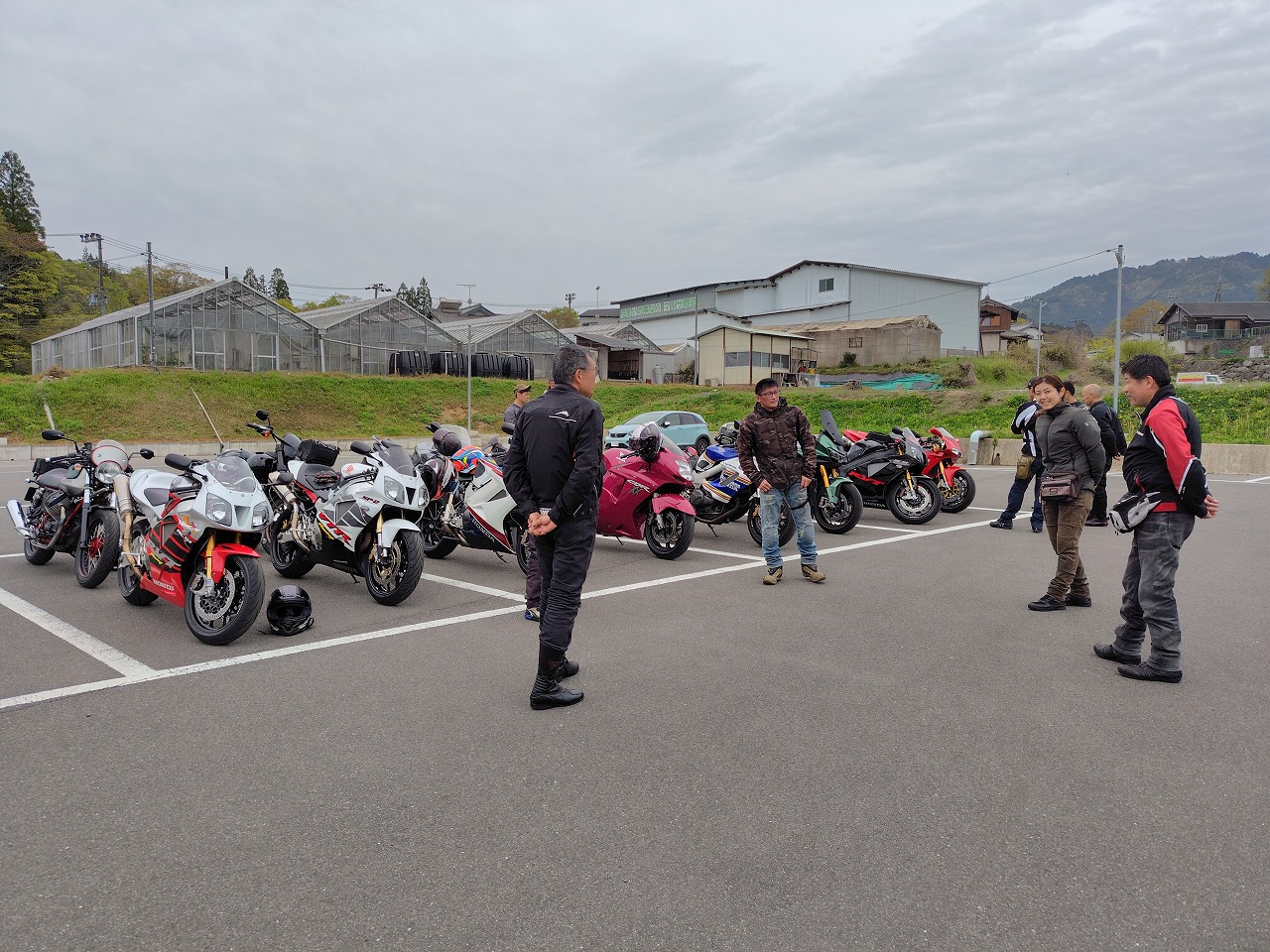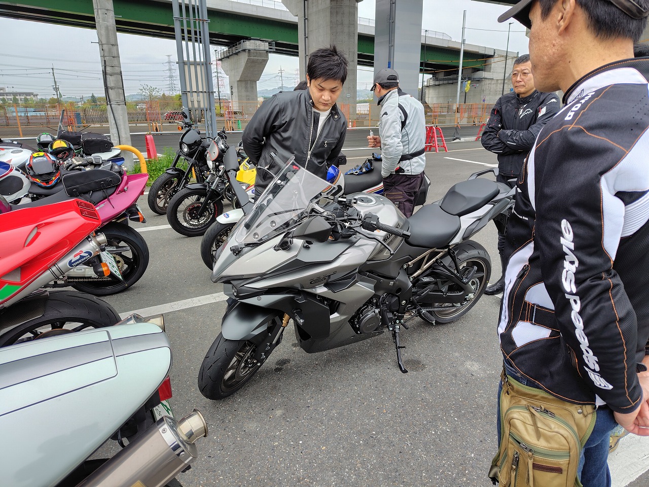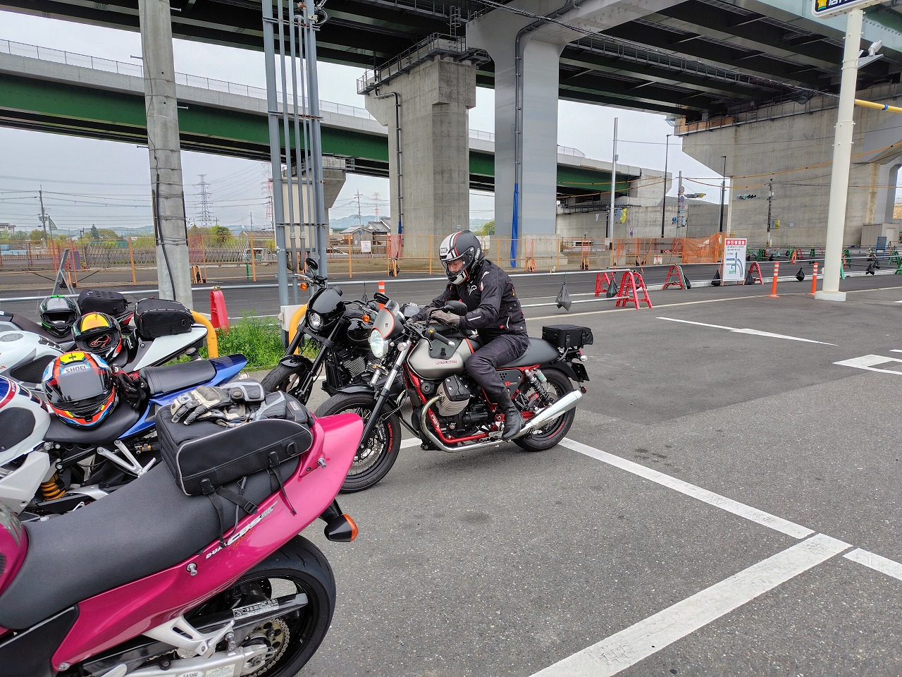 いつもありがとうございます、サッシュアッキーです 昨日は本当に久しぶりのベテランさんクラスのツーリング。 天候その他で去年の冬から全く開催できず、皆様ウズウズしてたそう、 週間予報ではガッツリ雨の予報でしたが、直前に曇りになりなんとか開催。 続々と集合 今回はお乗り換えのお客様のGSXS1000GTのN様、ヨーロッパの単身赴任が終わり 帰国、バイクも復活のO様、僕の元愛車のVFR800 VTECカスタムで登場。 皆さん興味津々 ドカティ998SのN様 春と秋しか乗れない、と (夏は熱すぎて、冬は融雪剤NG、そもそも始動しにくい)天気の不安を乗り越えて参戦 ガソリン満タンにして出発。 前述のように、冬眠明けのかた多くまだ目が慣れてないので敢えて大型向きじゃない 峠道を選択。 今回のコンセプトは大型でこの道行く?!です(笑) 井手町から和束へぬける狭いくねくね道で操作、リーンの感覚を思い出す。 僕も久しぶりのベテランさんの先導、なんかしらないけど緊張。 皆さん久しぶりなので会話も弾みます。 そこからまた加茂から柳生、月ヶ瀬、針と繋ぎ快走、したかったけど おもったより車多く、おとなしく走ります。 こんな天気なのにやたらバイク多い。バイクの駐輪場には停めれず。 色々なバイクを見て目の保養(笑) そこから、やまなみロード、御杖、曽爾、青山を抜け、 定番伊賀のとろろ庵伊賀路さんでゆったり食事。積もる話で盛り上がります。 いつもは豚トロを選びますが、今回はハンバーグ。 美味! 新しいバイクの話、ヨーロッパの話、タイヤ、エアバッグ、ヘルメットなど 話が尽きません。 いつも大人数ですみません! 本当に助かってます! 大満足で出発、そこからまたくねくね 高速、中速、低速コーナー織り交ぜ快走。 めちゃくちゃ楽しい! 最後はいつものセブンイレブンで休憩。 事前に言ってたコンセプト通りの道でしたね、と皆さんからお褒めの(?)言葉いただきました(笑) ワイワイ話をしてから大阪、滋賀組とはここでお別れ。 みんな笑顔! 京都組はここから和束経由、笠取から腐道242号(笑) 仁尾木幡線で 宇治に抜け快走。 この山奥の道でまさかの白バイに遭遇… 元々狭い道でそこまで飛ばせないので大丈夫でしたが、こんなところにもいてはるのに ビックリ。 気をつけようっと。 6時過ぎに帰宅。直後に雨降ってきました(笑) 危ない危ない。 南の方は天気良くて調子にのって310km走り結構疲れました(笑) でも皆さんの笑顔に触れて本当に楽しかったです また今回、エアバッグジャケットのご購入、タイヤの注文等をお受けして、 やっぱりツーリングで一緒走るを説得力が違うと実感。 エアバッグジャケットの装着率は5割を超えました。 この製品、夏はやっぱり暑くて、やせ我慢に… また首、脚、腕は護ってくれないので弱点もあります。 確かに11万というのはちょっと…というのは分かります。 でも色々見てきて、これで命が助かるなら安い、というのが今着てる方の意見。 僕もそう思います。 今回ドカティで参加のお客様は去年高速で転倒(今は手放した別のバイク) 、路面に叩きつけられましたが、 打撲だけでした。着てなかったら間違いなく肩、鎖骨等粉砕してたと思われます。 後ろで目撃した方は、かなりショッキングでシリアスな状況に最悪の事態も覚悟した そうです。 それが普通に立ち上がり、本人曰く「あれ?なんとも無いわ、肩が少し痛いだけ」と、 救急車も必要なし。バイクのレッカーだけでした。 実は当日朝に、皆さんも買いましょうよ、と言ってたんですが、そんな開くかどうか分からない高価なもの要りませんよ!って言ってた2名は即行買いに行きました。 またその事故がきっかけで講習うけて当店でも取り扱い開始し始めました。 皆さんも真剣に検討されてはどうでしょう。