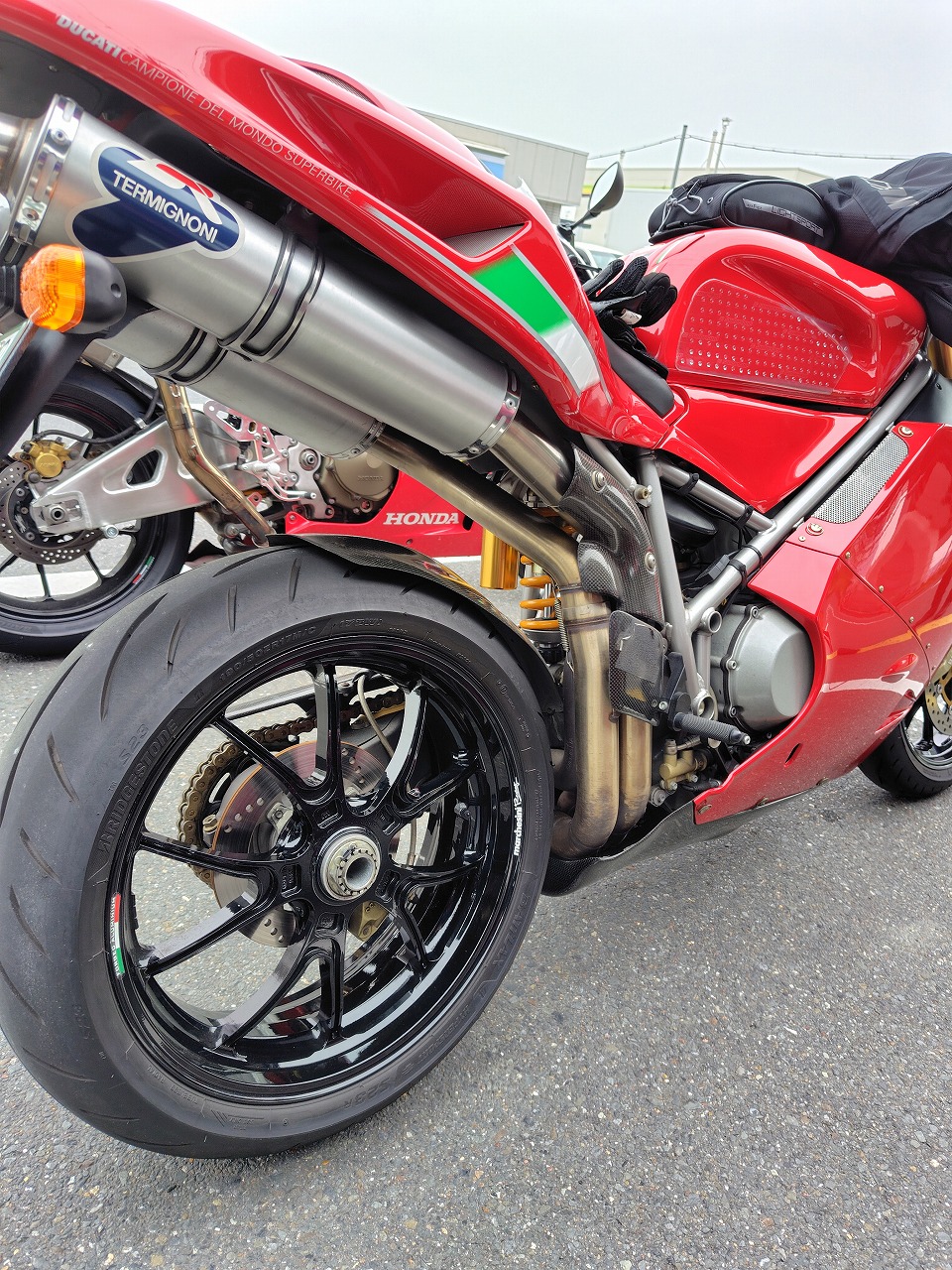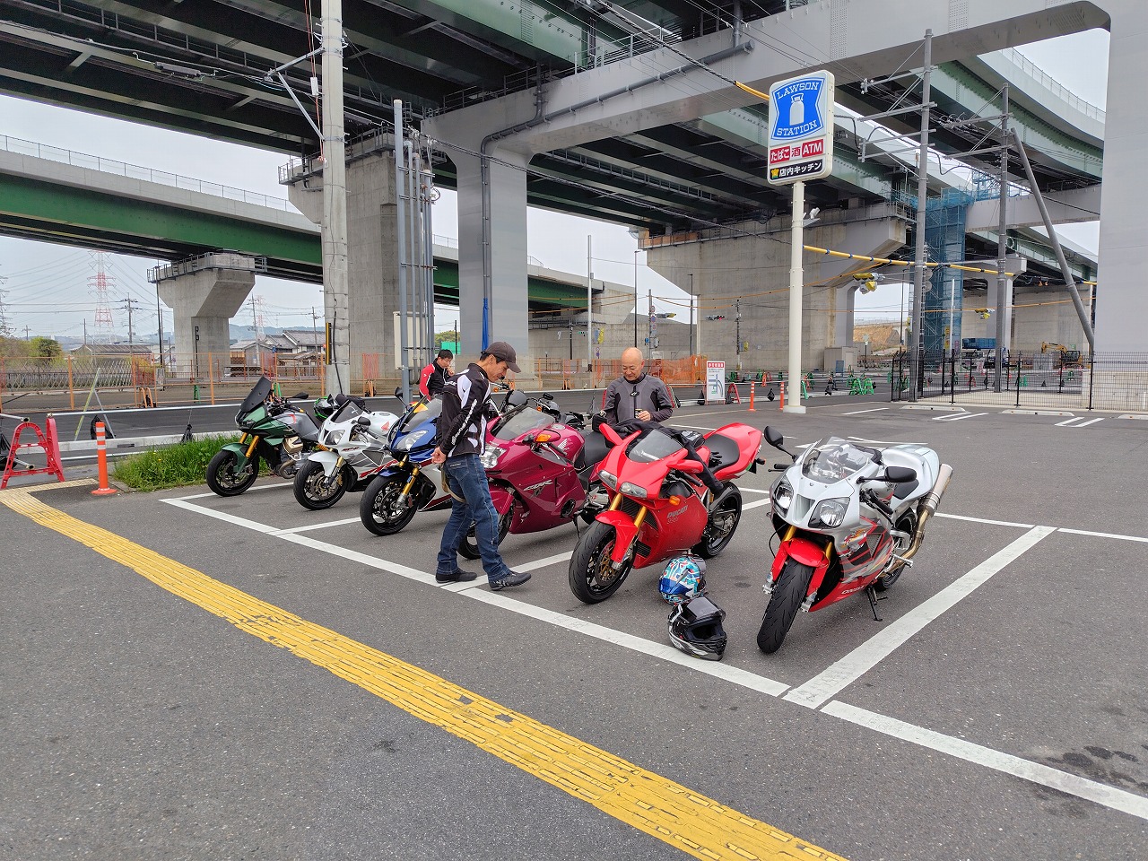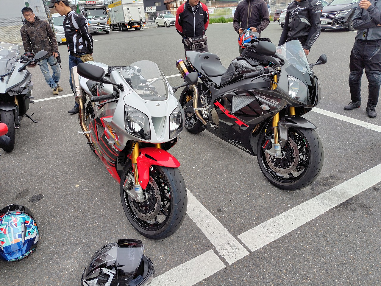 いつもありがとうございます、サッシュアッキーです 昨日は本当に久しぶりのベテランさんクラスのツーリング。 天候その他で去年の冬から全く開催できず、皆様ウズウズしてたそう、 週間予報ではガッツリ雨の予報でしたが、直前に曇りになりなんとか開催。 続々と集合 今回はお乗り換えのお客様のGSXS1000GTのN様、ヨーロッパの単身赴任が終わり 帰国、バイクも復活のO様、僕の元愛車のVFR800 VTECカスタムで登場。 皆さん興味津々 ドカティ998SのN様 春と秋しか乗れない、と (夏は熱すぎて、冬は融雪剤NG、そもそも始動しにくい)天気の不安を乗り越えて参戦 ガソリン満タンにして出発。 前述のように、冬眠明けのかた多くまだ目が慣れてないので敢えて大型向きじゃない 峠道を選択。 今回のコンセプトは大型でこの道行く?!です(笑) 井手町から和束へぬける狭いくねくね道で操作、リーンの感覚を思い出す。 僕も久しぶりのベテランさんの先導、なんかしらないけど緊張。 皆さん久しぶりなので会話も弾みます。 そこからまた加茂から柳生、月ヶ瀬、針と繋ぎ快走、したかったけど おもったより車多く、おとなしく走ります。 こんな天気なのにやたらバイク多い。バイクの駐輪場には停めれず。 色々なバイクを見て目の保養(笑) そこから、やまなみロード、御杖、曽爾、青山を抜け、 定番伊賀のとろろ庵伊賀路さんでゆったり食事。積もる話で盛り上がります。 いつもは豚トロを選びますが、今回はハンバーグ。 美味! 新しいバイクの話、ヨーロッパの話、タイヤ、エアバッグ、ヘルメットなど 話が尽きません。 いつも大人数ですみません! 本当に助かってます! 大満足で出発、そこからまたくねくね 高速、中速、低速コーナー織り交ぜ快走。 めちゃくちゃ楽しい! 最後はいつものセブンイレブンで休憩。 事前に言ってたコンセプト通りの道でしたね、と皆さんからお褒めの(?)言葉いただきました(笑) ワイワイ話をしてから大阪、滋賀組とはここでお別れ。 みんな笑顔! 京都組はここから和束経由、笠取から腐道242号(笑) 仁尾木幡線で 宇治に抜け快走。 この山奥の道でまさかの白バイに遭遇… 元々狭い道でそこまで飛ばせないので大丈夫でしたが、こんなところにもいてはるのに ビックリ。 気をつけようっと。 6時過ぎに帰宅。直後に雨降ってきました(笑) 危ない危ない。 南の方は天気良くて調子にのって310km走り結構疲れました(笑) でも皆さんの笑顔に触れて本当に楽しかったです また今回、エアバッグジャケットのご購入、タイヤの注文等をお受けして、 やっぱりツーリングで一緒走るを説得力が違うと実感。 エアバッグジャケットの装着率は5割を超えました。 この製品、夏はやっぱり暑くて、やせ我慢に… また首、脚、腕は護ってくれないので弱点もあります。 確かに11万というのはちょっと…というのは分かります。 でも色々見てきて、これで命が助かるなら安い、というのが今着てる方の意見。 僕もそう思います。 今回ドカティで参加のお客様は去年高速で転倒(今は手放した別のバイク) 、路面に叩きつけられましたが、 打撲だけでした。着てなかったら間違いなく肩、鎖骨等粉砕してたと思われます。 後ろで目撃した方は、かなりショッキングでシリアスな状況に最悪の事態も覚悟した そうです。 それが普通に立ち上がり、本人曰く「あれ?なんとも無いわ、肩が少し痛いだけ」と、 救急車も必要なし。バイクのレッカーだけでした。 実は当日朝に、皆さんも買いましょうよ、と言ってたんですが、そんな開くかどうか分からない高価なもの要りませんよ!って言ってた2名は即行買いに行きました。 またその事故がきっかけで講習うけて当店でも取り扱い開始し始めました。 皆さんも真剣に検討されてはどうでしょう。