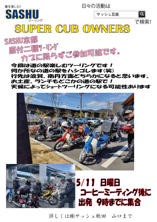 5/11日 日曜日 カブから125ccまでのスクーター等が対象です。