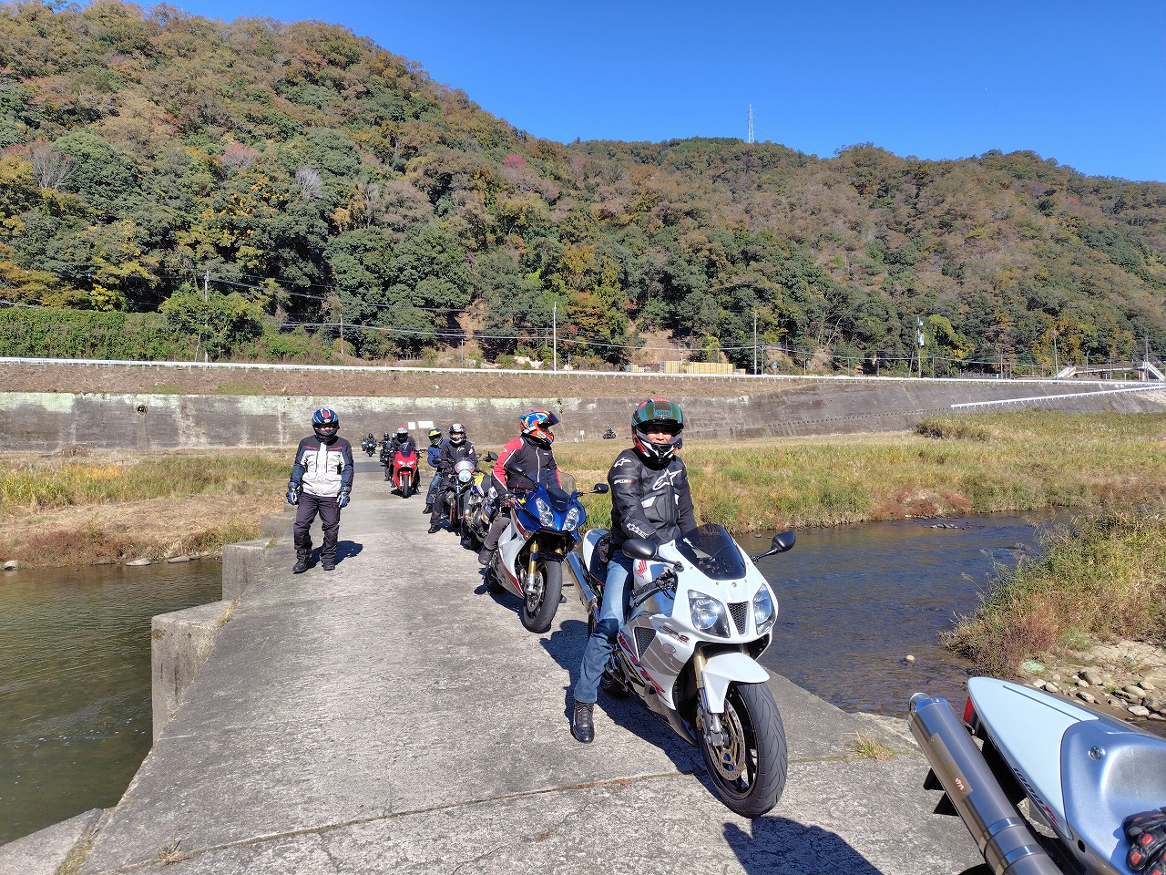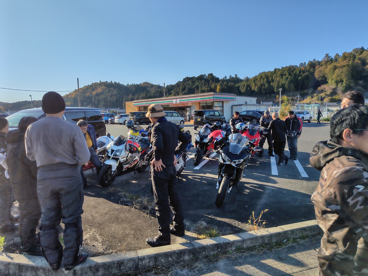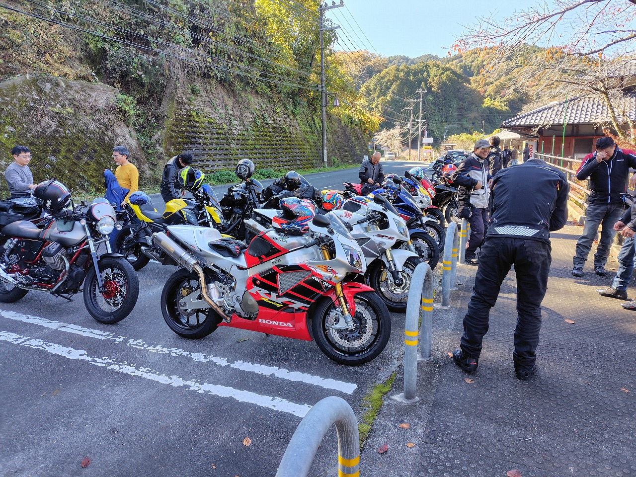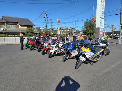 いつもありがとうございます、サッシュのアッキーです。 先日の16日はコーヒーミーティングからのツーリングでした。 早朝7時の空気はかなり冷たくライダーにはつらい季節がやってきた、と感じますが 本日は幸い快晴、気温が上がるらしいです。 今回はスペシャルテーブルHALOさんに来ていただき、本格スパイスカレーを提供していただき 冷えた身体を温めてからの出発。実際かなり身体温まりました! 本当に久しぶりのベテランクラス、ノーマルクラスと合わせて14台 快走したいところですが、さすがに紅葉シーズン、なかなか車多く難しい… 気温低いこともあり、午前中はお喋りメイン。 よくそんなに話すことあるな…と感心するくらい皆さんよくしゃべる!ww ほっといたら日暮れまで喋りそうなので、出発。 定番潜没橋を経由して奈良、滋賀、奈良のワインディング快走! 月ヶ瀬湖畔、ベテランクラス嬉々として走る! 僕も久しぶりのベテランクラスの先導。めちゃくちゃ楽しいけど最近のんびり 楽してたので( ´∀` )…背中のプレッシャーが半端ない(笑) ベテランクラスの人たちは本当に上手くて、生半可な先導では満足させられない。 正確なライン取り、正確な減速、向き変え、超丁寧なアクセルワークからスムースな加速、 この時期特有の落ち葉をはじめとする路面状況の瞬時の把握、 針の穴を通す正確なライディングが必要。楽しい!!と自身も楽しみました。 ピリピリした感じにシビレながらも、めちゃくちゃ疲れましたが… 散々走り遅めの昼ご飯。(朝遅めにカレー食べたのでなかなかお腹空かない) 大人数をいきなり受け入れてくれる伊賀路 とろろ庵さんへ 豚トロは自分で焼くスタイル いつもありがとうございます。相変わらず美味しい! 最後のコンビニ休憩。本日は快晴、適温の中皆さんガッツリ走ってお疲れ気味(笑) 冬の前の最高の晩秋ツーリングになりました! 皆様本当にありがとうございました! あー、楽しかった! 次回は未定。冬の気温次第でございます。