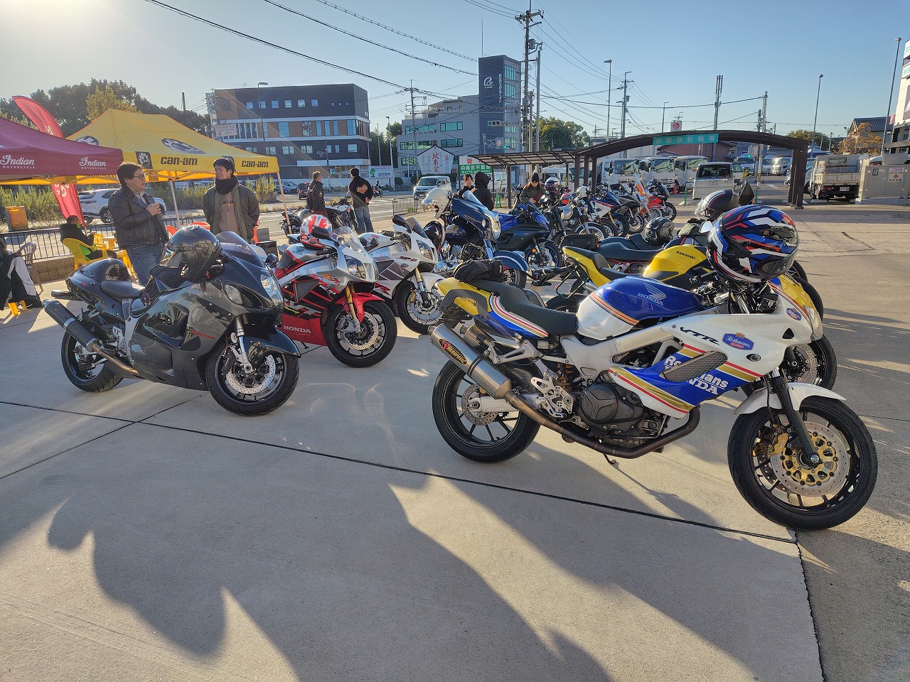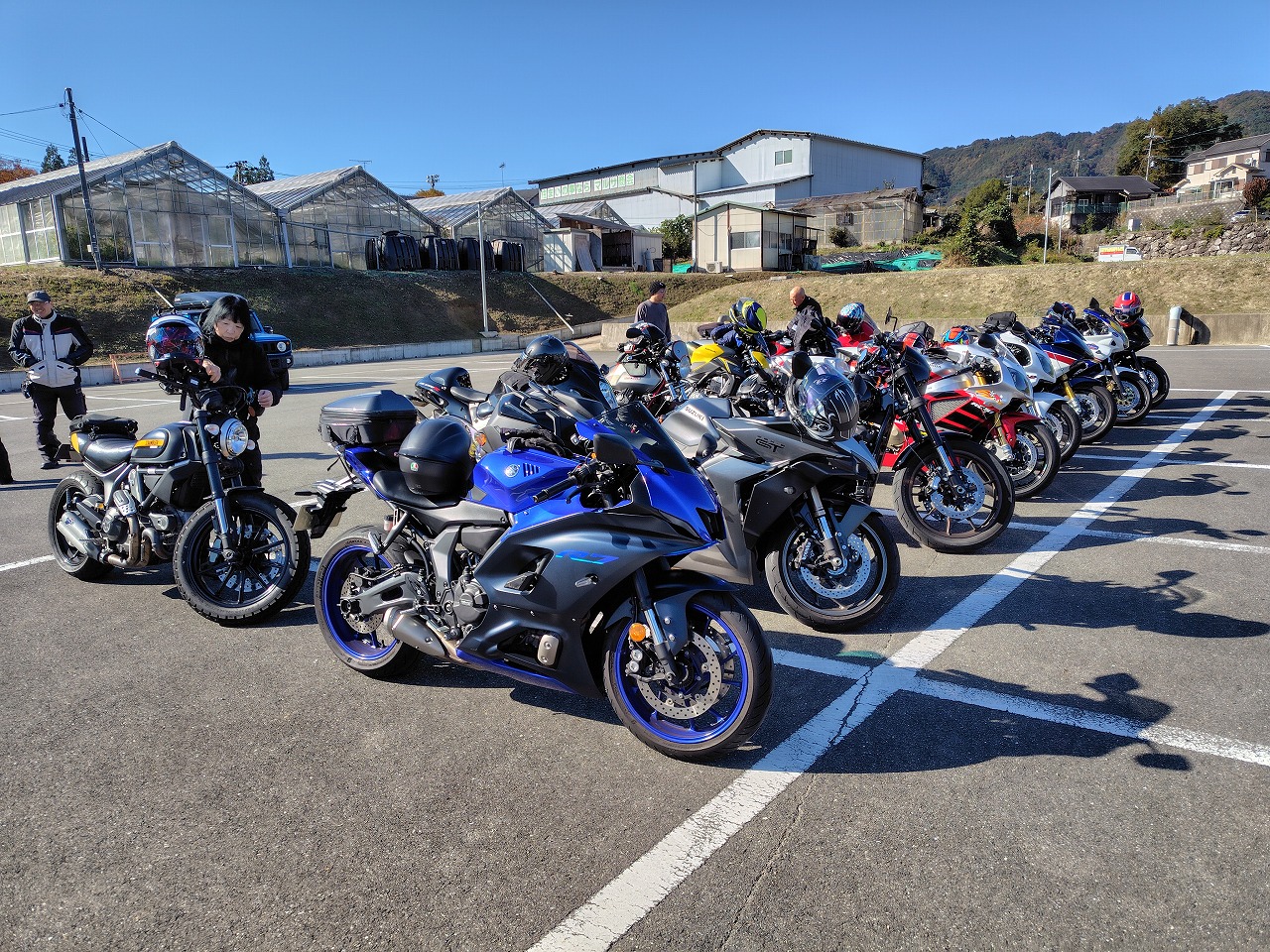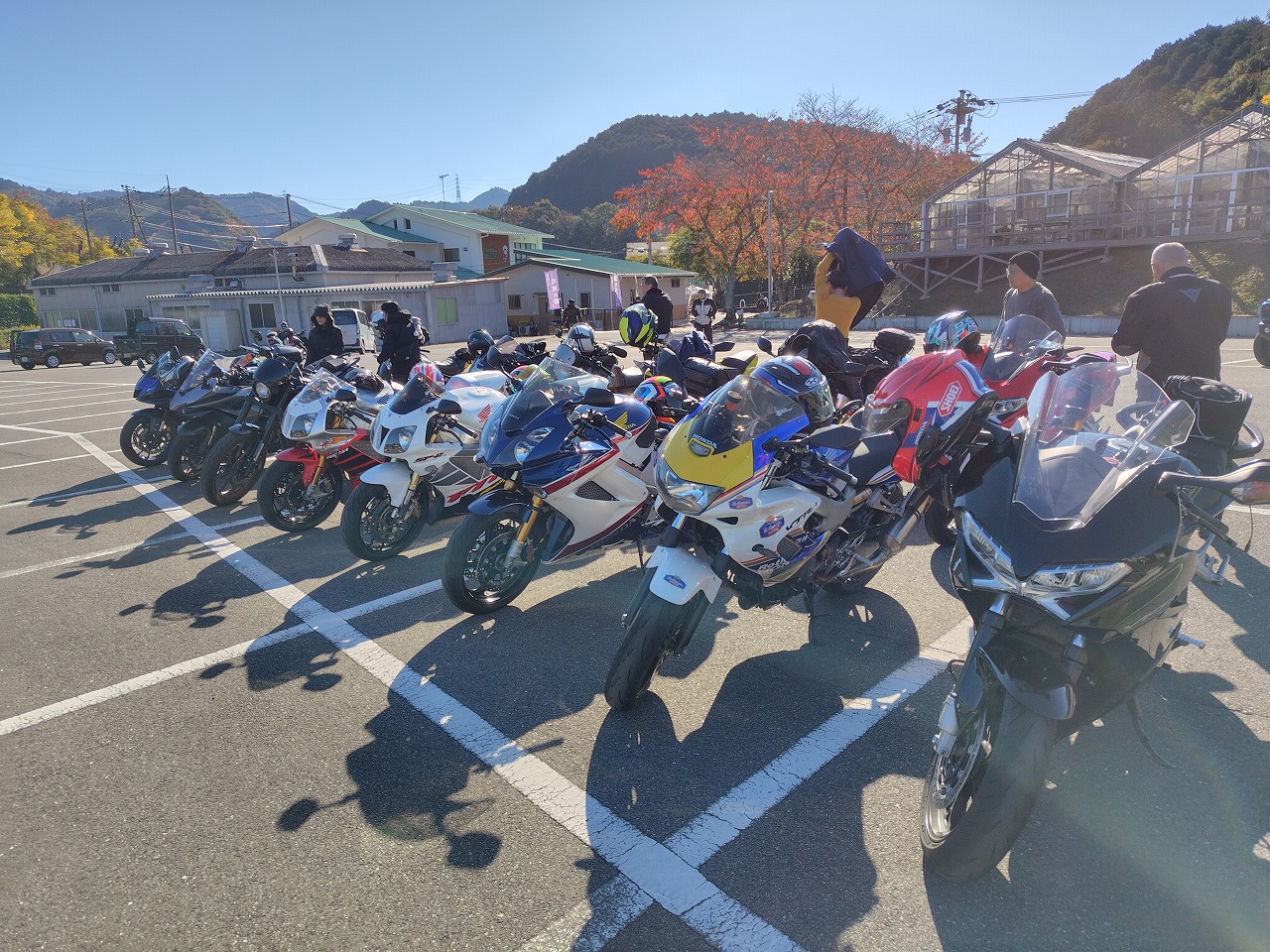 いつもありがとうございます、サッシュのアッキーです。 先日の16日はコーヒーミーティングからのツーリングでした。 早朝7時の空気はかなり冷たくライダーにはつらい季節がやってきた、と感じますが 本日は幸い快晴、気温が上がるらしいです。 今回はスペシャルテーブルHALOさんに来ていただき、本格スパイスカレーを提供していただき 冷えた身体を温めてからの出発。実際かなり身体温まりました! 本当に久しぶりのベテランクラス、ノーマルクラスと合わせて14台 快走したいところですが、さすがに紅葉シーズン、なかなか車多く難しい… 気温低いこともあり、午前中はお喋りメイン。 よくそんなに話すことあるな…と感心するくらい皆さんよくしゃべる!ww ほっといたら日暮れまで喋りそうなので、出発。 定番潜没橋を経由して奈良、滋賀、奈良のワインディング快走! 月ヶ瀬湖畔、ベテランクラス嬉々として走る! 僕も久しぶりのベテランクラスの先導。めちゃくちゃ楽しいけど最近のんびり 楽してたので( ´∀` )…背中のプレッシャーが半端ない(笑) ベテランクラスの人たちは本当に上手くて、生半可な先導では満足させられない。 正確なライン取り、正確な減速、向き変え、超丁寧なアクセルワークからスムースな加速、 この時期特有の落ち葉をはじめとする路面状況の瞬時の把握、 針の穴を通す正確なライディングが必要。楽しい!!と自身も楽しみました。 ピリピリした感じにシビレながらも、めちゃくちゃ疲れましたが… 散々走り遅めの昼ご飯。(朝遅めにカレー食べたのでなかなかお腹空かない) 大人数をいきなり受け入れてくれる伊賀路 とろろ庵さんへ 豚トロは自分で焼くスタイル いつもありがとうございます。相変わらず美味しい! 最後のコンビニ休憩。本日は快晴、適温の中皆さんガッツリ走ってお疲れ気味(笑) 冬の前の最高の晩秋ツーリングになりました! 皆様本当にありがとうございました! あー、楽しかった! 次回は未定。冬の気温次第でございます。