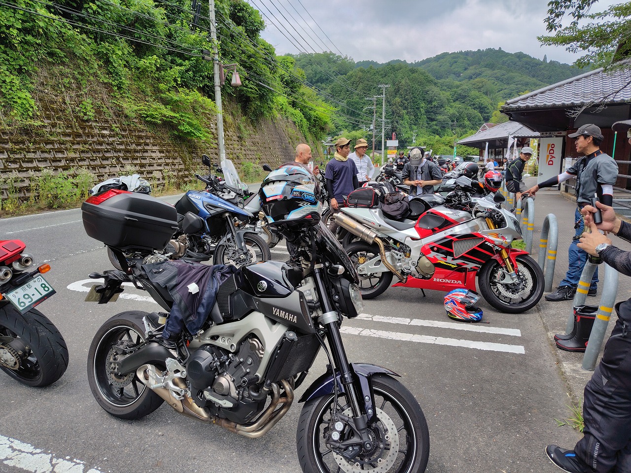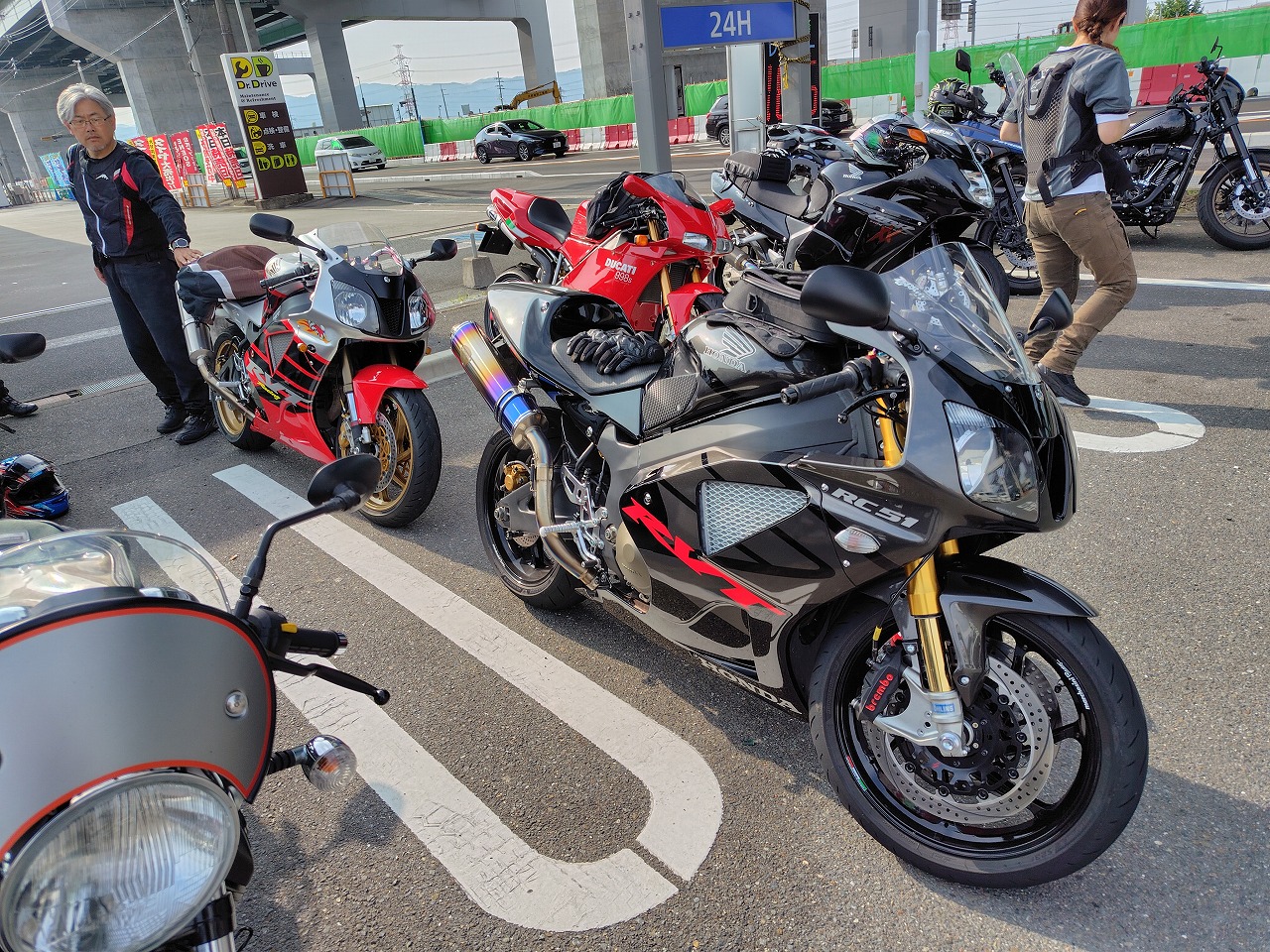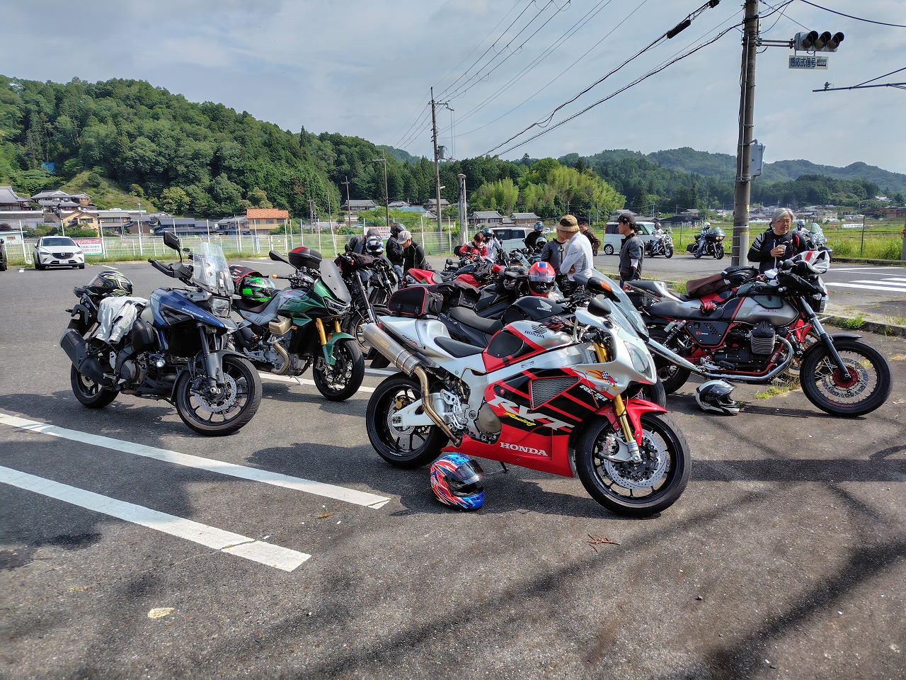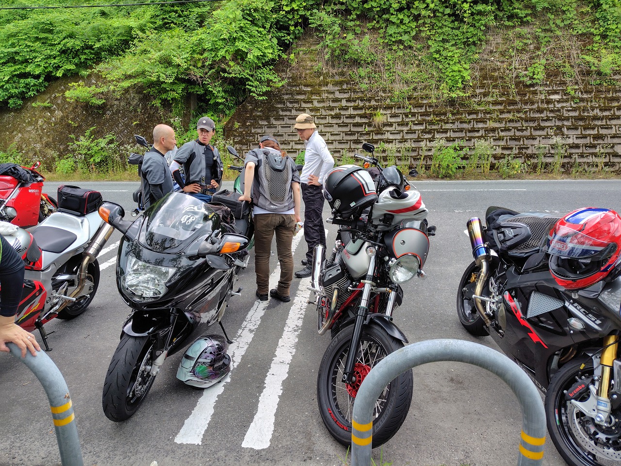 いつもお世話になっております、サッシュのアッキーです。 先日の日曜日は有給を頂きベテランクラスツーリングでした。 前週がガッツリ雨で1週間順延でなんとか開催。 前日に納車した20年連れ添ったブラックバードから 元僕の乗ってたブラックバードにお乗り換えのM様、ワクワクと不安が入り交じりがら 参加されます。 早朝城陽のガススタ併設のコンビニに続々集合。 微妙な予報ですが結構晴れ間もあり暑くなりそうですが、大阪や兵庫からも来てくださる。 ありがたいです。 一通り話した後出発、井手町から険しい山越え。一気に信楽まで走ります いやー、暑いけど楽しい! そこから山越え峠道ばかりの快走月ヶ瀬湖畔ルート 昨日納車のM様 いきなり全く問題なく快走。楽しい!連発。 以前のくたびれた車両で走ってはったんですが、キッチリ仕上げたバイクは こんなにも違うものか?!と驚かれてました。 また、乗りやすさの中にもタイミング間違ったりするとバイクがはっきり教えてくれる、と ライディングの組み立てをしないと真価を発揮できない車両なのも理解されてました。 年代、相場考えるとかなり高額の車両になりましたが、価値を解ってくださり その価格をむしろ安いと言ってくださるのはライディングする本人の腕もあります。 メカニックとしても仕上げたバイクが評価してもらえる、 こんなありがたく幸せなことはないですね。 今まで僕が個人的に所有して仕上げ、その後役目を終えてお客さまに渡った時にくださる言葉 が嘘でないことは走りをみて、降りた後の笑顔見ればわかります。 M様も20年一緒に走ってきて本当に上達され、先導してても安心して走れます。 これからもよろしくお願いします。 昼食は針テラス横のライトニングボルトさん。 いつも大人数で押しかけてすみません…とても助かってます。 カレー、チキンカツ、ハンバーガー、色々あり助かります 続々ライダーさんご来店、席を空けるために早めにでます。 午後も奈良、三重、京都南部の快走路をグルぐる。 ここからまたもやトラブルの連鎖… なんでもない信号待ちで油断、エンスト、立ちゴケ。エアバックジャケット開く人… 狭い峠道でリヤブレーキ使いすぎフェード、ブレーキスカスカになる人。 しばらくすると戻りましたが、全然来ないので真剣に焦りました。 しまいに最後高速で携帯落としてなくす人… なんか最近のツーリングは必ず何かある… 先のお二方は先にサッシュに向かい、残りの人は夕方までワインディング快走、 堪能できました。 来月以降は暑さでこんなに走れないでしょうね。 それよりトラブルの連鎖が止まりますように…。 まあ幸い大きな事故で怪我とかでないのが救いですが。