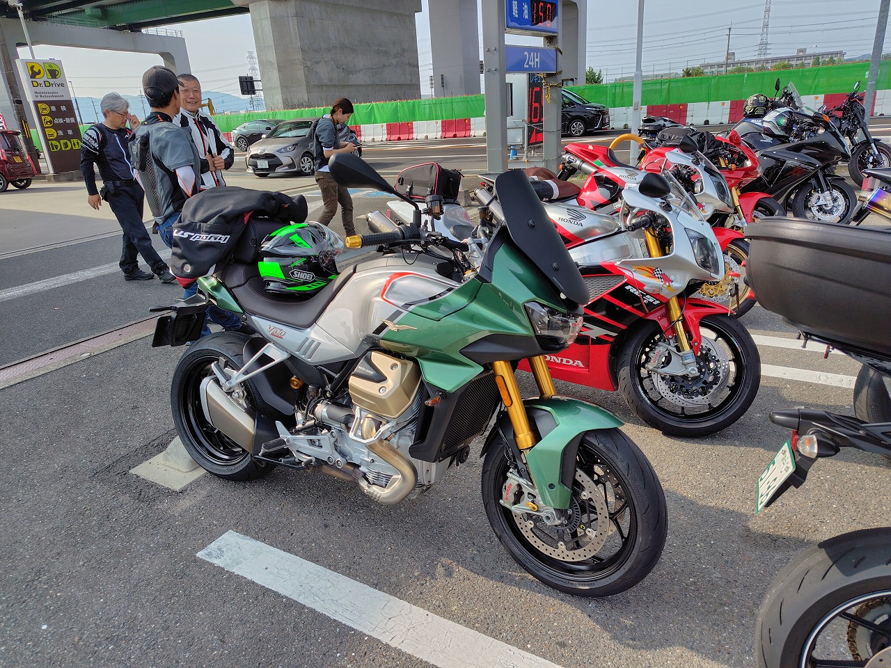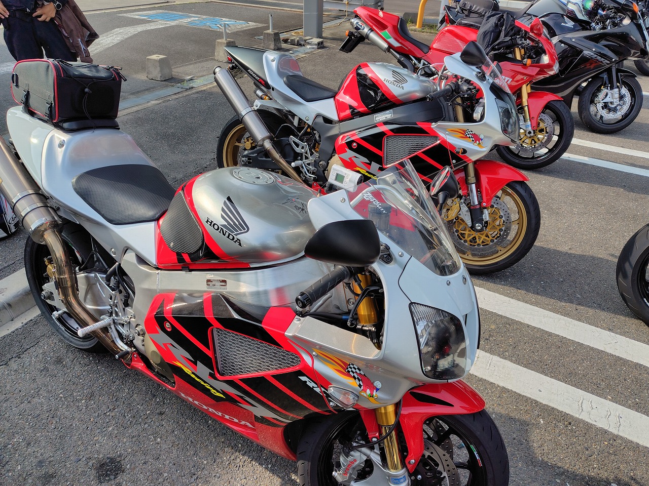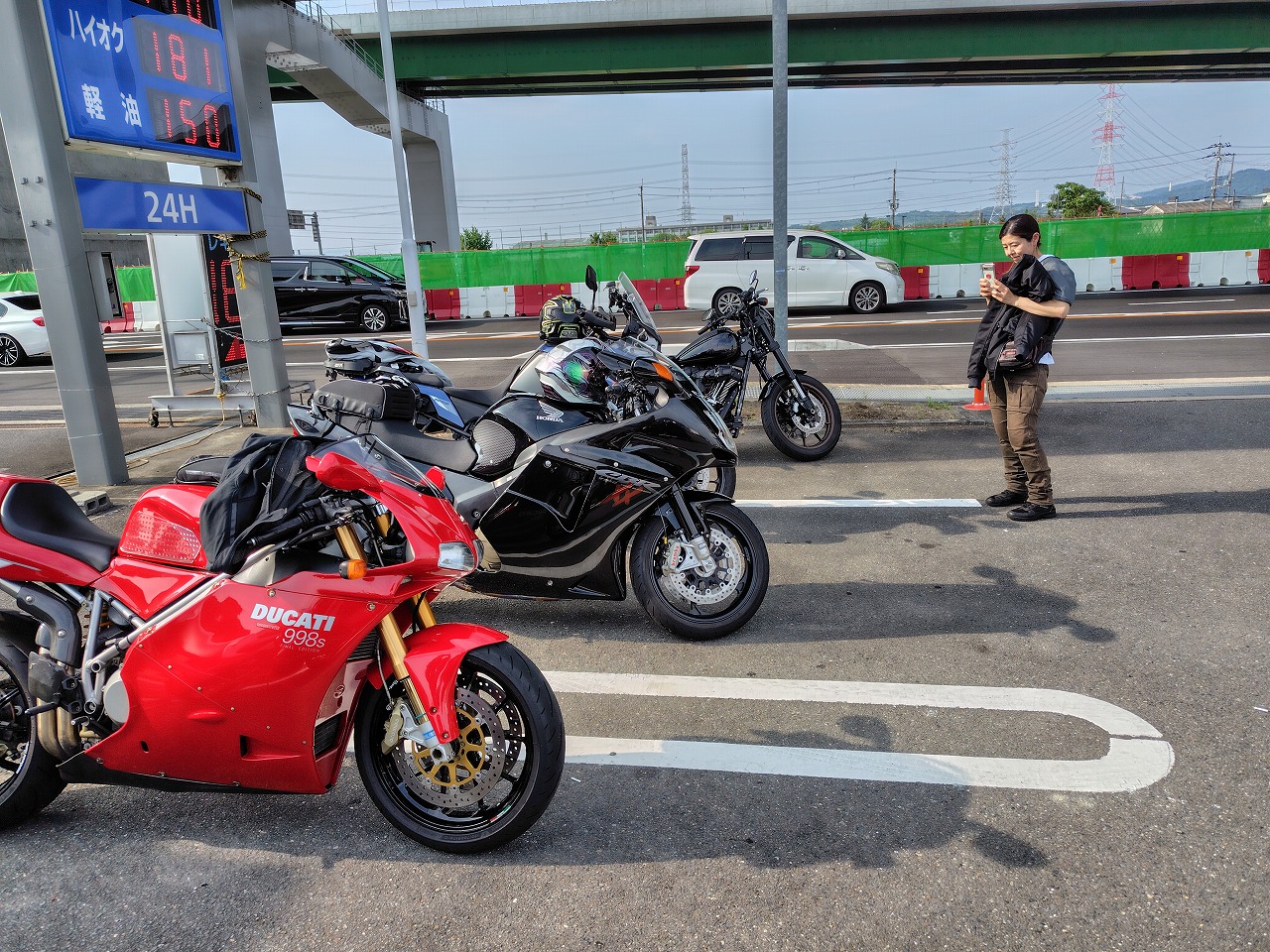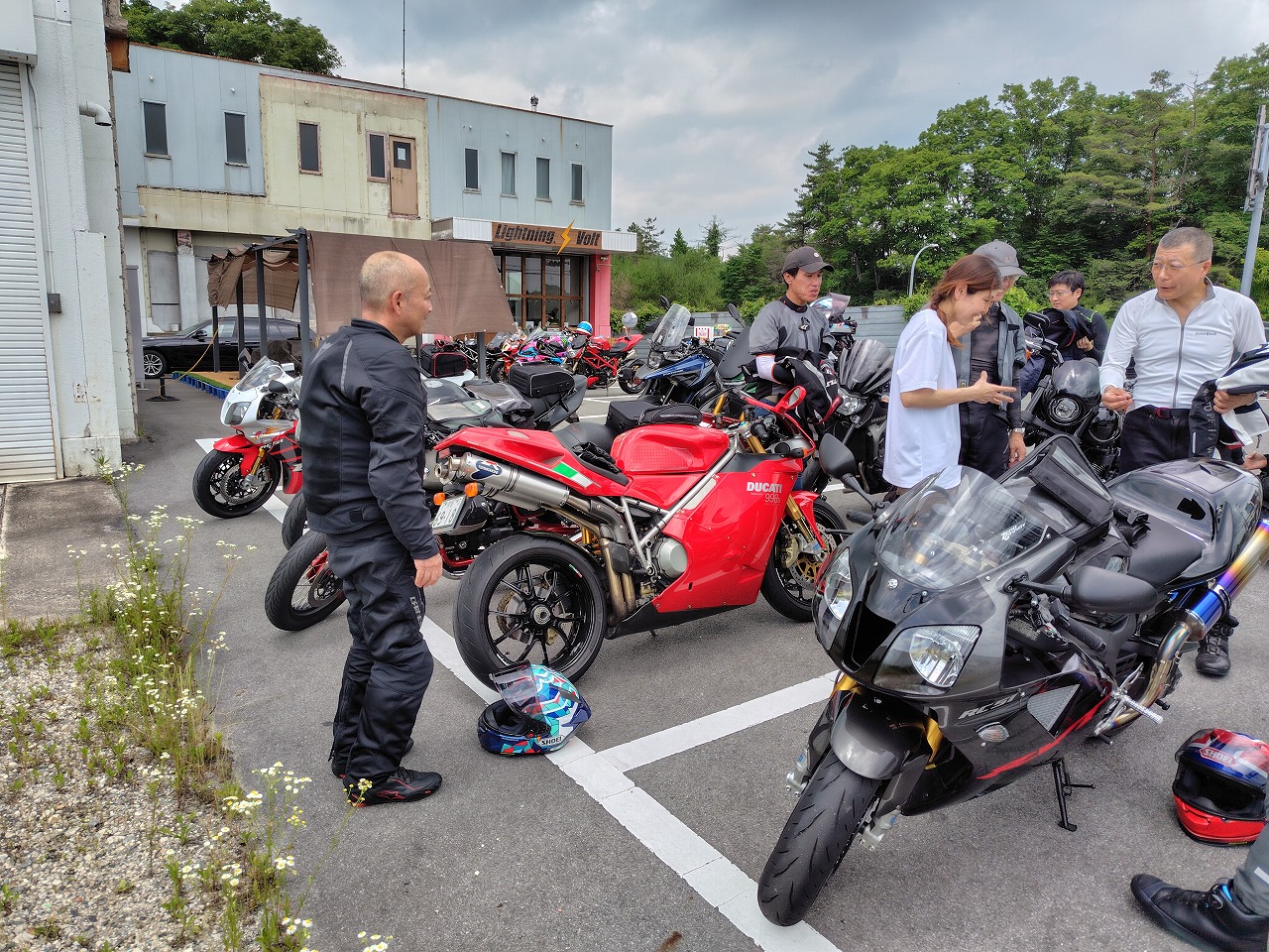 いつもお世話になっております、サッシュのアッキーです。 先日の日曜日は有給を頂きベテランクラスツーリングでした。 前週がガッツリ雨で1週間順延でなんとか開催。 前日に納車した20年連れ添ったブラックバードから 元僕の乗ってたブラックバードにお乗り換えのM様、ワクワクと不安が入り交じりがら 参加されます。 早朝城陽のガススタ併設のコンビニに続々集合。 微妙な予報ですが結構晴れ間もあり暑くなりそうですが、大阪や兵庫からも来てくださる。 ありがたいです。 一通り話した後出発、井手町から険しい山越え。一気に信楽まで走ります いやー、暑いけど楽しい! そこから山越え峠道ばかりの快走月ヶ瀬湖畔ルート 昨日納車のM様 いきなり全く問題なく快走。楽しい!連発。 以前のくたびれた車両で走ってはったんですが、キッチリ仕上げたバイクは こんなにも違うものか?!と驚かれてました。 また、乗りやすさの中にもタイミング間違ったりするとバイクがはっきり教えてくれる、と ライディングの組み立てをしないと真価を発揮できない車両なのも理解されてました。 年代、相場考えるとかなり高額の車両になりましたが、価値を解ってくださり その価格をむしろ安いと言ってくださるのはライディングする本人の腕もあります。 メカニックとしても仕上げたバイクが評価してもらえる、 こんなありがたく幸せなことはないですね。 今まで僕が個人的に所有して仕上げ、その後役目を終えてお客さまに渡った時にくださる言葉 が嘘でないことは走りをみて、降りた後の笑顔見ればわかります。 M様も20年一緒に走ってきて本当に上達され、先導してても安心して走れます。 これからもよろしくお願いします。 昼食は針テラス横のライトニングボルトさん。 いつも大人数で押しかけてすみません…とても助かってます。 カレー、チキンカツ、ハンバーガー、色々あり助かります 続々ライダーさんご来店、席を空けるために早めにでます。 午後も奈良、三重、京都南部の快走路をグルぐる。 ここからまたもやトラブルの連鎖… なんでもない信号待ちで油断、エンスト、立ちゴケ。エアバックジャケット開く人… 狭い峠道でリヤブレーキ使いすぎフェード、ブレーキスカスカになる人。 しばらくすると戻りましたが、全然来ないので真剣に焦りました。 しまいに最後高速で携帯落としてなくす人… なんか最近のツーリングは必ず何かある… 先のお二方は先にサッシュに向かい、残りの人は夕方までワインディング快走、 堪能できました。 来月以降は暑さでこんなに走れないでしょうね。 それよりトラブルの連鎖が止まりますように…。 まあ幸い大きな事故で怪我とかでないのが救いですが。