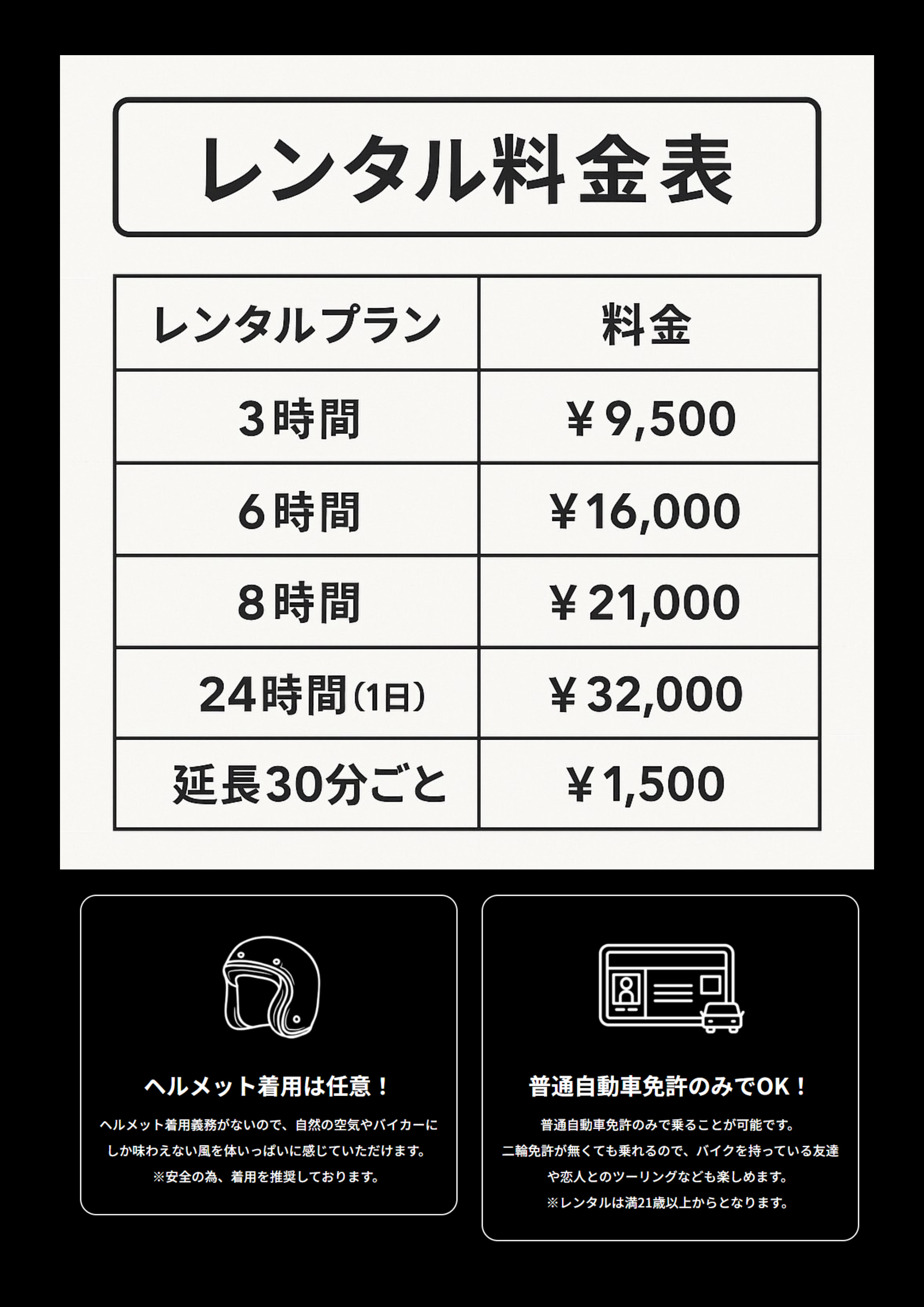 万が一走行された場合は次回よりご利用をお断りさせていただくことがございます。また一切の保険が適用されず、すべてご実費での負担となります。