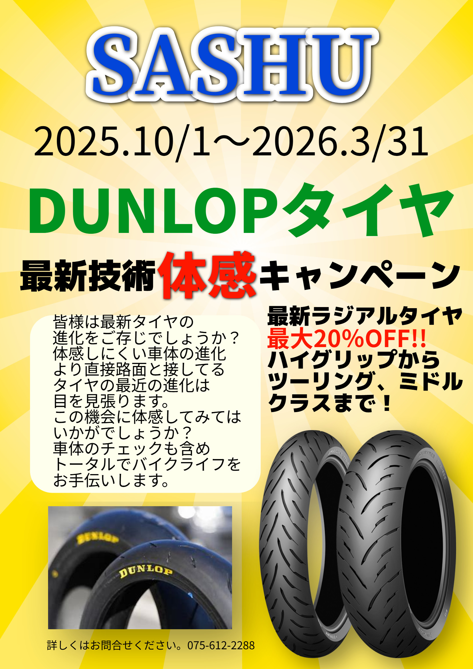 DUNLOPの最新ラジアルタイヤが最大20%OFFで