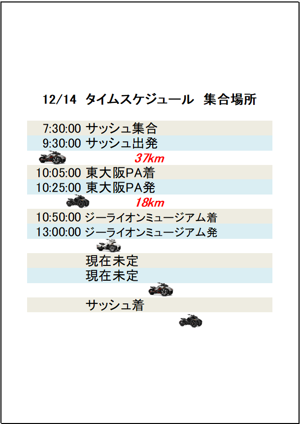 いつもありがとうございます。 https://lavie-osaka.jp/ランチ料金:¥3,850円 本来ランチ料金とミュージアム入場料が別ですが、 今回特別にランチ料金のみでミュージアムも入場可能となりました!! その後のルートは現在調整中です。 お店の予約の都合もありますので、 11月30日までに参加可否のご連絡をお願いいたします。 今年最後のツーリング、ぜひ一緒に走りましょう! よろしくお願いいたします。 PR